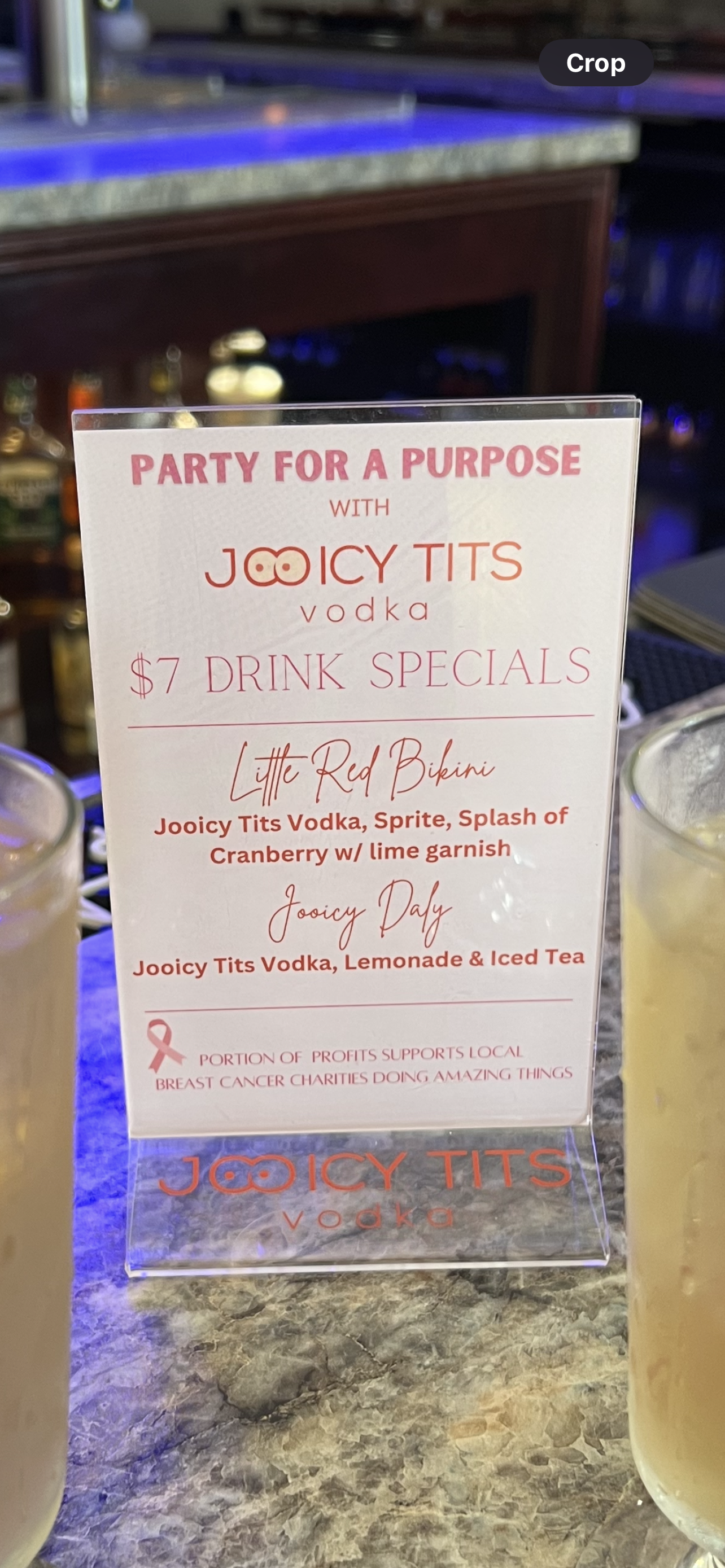 So whether you’re toasting with your besties, shaking up a dirty martini, or raising funds for a cause that touches SO many—Jooicy Tits Vodka is here for it.